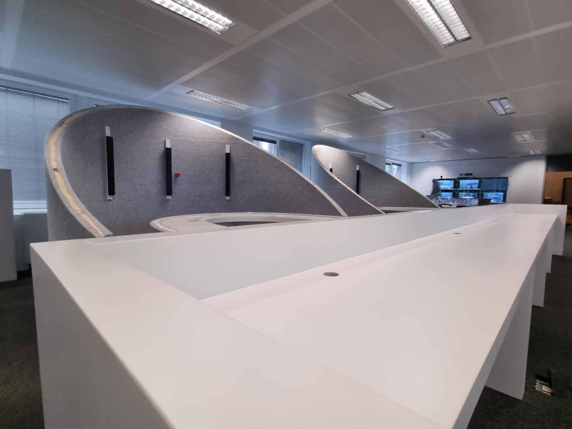 Voor Seafar hebben wij een volledige kantoorinrichting verzorgd. Dit omvatte zes Shore Control Centers met gebogen wanden afgewerkt met vilt, bureaus met geïntegreerde bediening, opbergplaatsen voor PC's en bekabeling. Ook hebben we twee Traffic Control bureaus, voorzien van schuine fronten en kabeldoorvoeren. Het project werd afgerond met transport en plaatsing op hun locatie in Antwerpen.